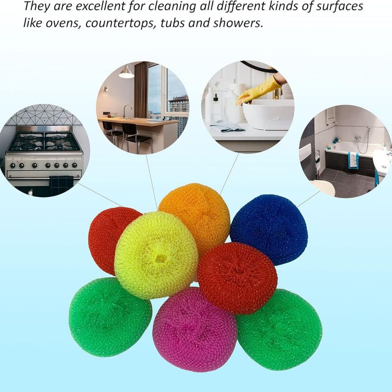 मेश प्लास्टिक स्कॉरर स्क्रबिंग क्लीनिंग बॉल्स निश्चित रूप से आपके लिए हैं। टिकाऊ और रोजमर्रा के उपयोग के लिए उपयुक्त। इस पैक में सुपर ब्राइट क्लीनर स्पंज के 10 टुकड़े हैं जो किसी भी रसोई के बर्तन पर उपयोग करने के लिए उपयुक्त हैं।